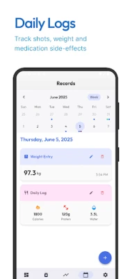 • Log your GLP-1 injections with details on dose, timing, and injection site