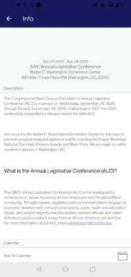 Make attending the Annual Legislative Conference easy with the app! The nation's leading policy conference is back and in-person on Wednesday, September 24, 2025, through Sunday, September 28, 2025, in Washington, D.C.! Join us as we reunite under this year's theme "Made for This Moment: Power, Policy, & Progress" to discuss issues impacting the Black community.
