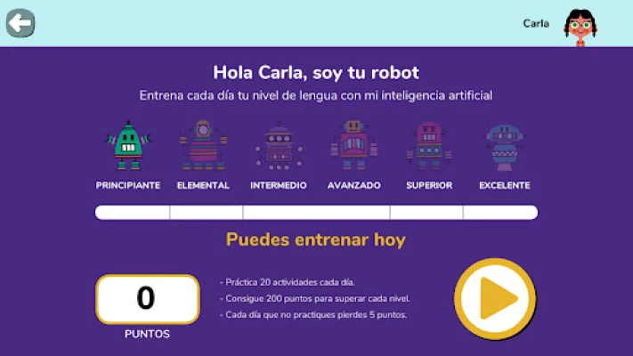 Un asistente automatizado entrena diariamente los niños y las niñas para que mejoren gradualmente su nivel de lengua española mediante 20 preguntas diferentes por sesión. Registra los aciertos, evalúa los errores y propone al alumno/a un ejercicio cada día para que practiquen más a fondo los contenidos que necesitan reforzar. De esta forma se comprueba que mantienen "en forma" los conocimientos básico adquiridos anteriormente y que consolidan aquellos que está cursando en la actualidad.