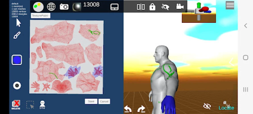 d3D Sculptor is a digital sculpting tool that combines 3D modeling, texturing and painting. d3D offers tools to push, pull, extrude, move, rotate, stretch, or otherwise manipulate a digital object as if it were made of a real-life substance such as clay. Tweak UV coordinates - Scale, Rotate, Translate UV, and revert to the original state at any point. Import OBJ for further detailing or texturing. OBJ export and load your 3D Model into 3D design programs!
