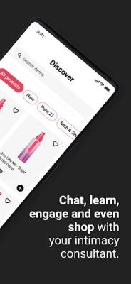 Chat, learn, engage and even shop with your intimacy consultant. The application allows you to fulfill all your intimacy needs quickly and easily.