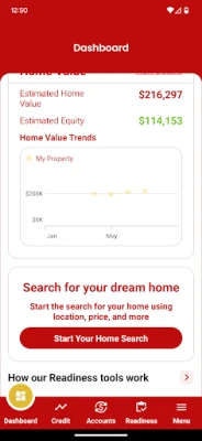 • Mortgage readiness assessment: Check your personal Homeownership Snapshot to see how you stand on the key financial factors used for mortgage approvability, and that will help you reduce your estimated monthly payment when buying your next home.