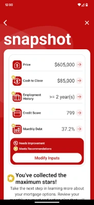 • Affordability analysis: Check your total buying power based on where your finances are today, then see the real-time impact that interest rate changes or other factors can have on your estimated monthly payment.