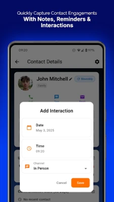 3) Orbit does the rest by using call and text message logs (all of which stay local to your device!) to help nudge you if you're not keeping that contact in your orbit.