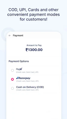 Integrated payment gateways facilitate online payment enabling prepaid and COD ordering. Receive your payables via UPI, credit cards, debit cards, and net-banking.