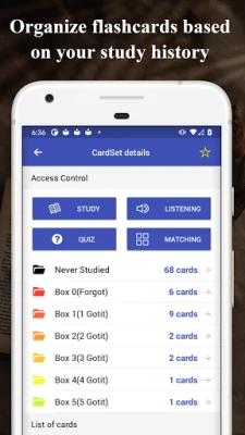 • Track study progress using Leitner system.
