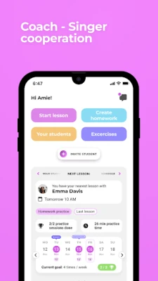 Unlike other apps, Vocaly supports vocal coach and their students during the entire process - on lessons and during practicing at home.