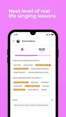 Support vocal coaches during singing classes making it easy to take notes and create & assign homework to their students.